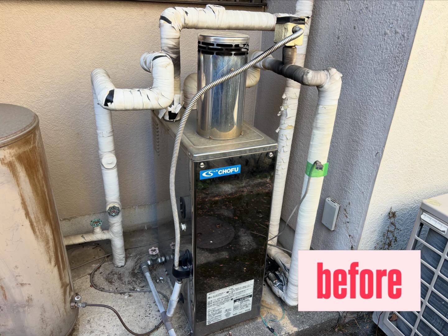今回交換した給湯器は、約24年間使用されていた石油給湯器で、経年劣化による故障でした。