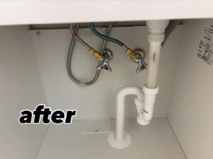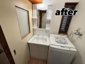 水漏れも解消し、清潔で使いやすい洗面空間に生まれ変わりました。
